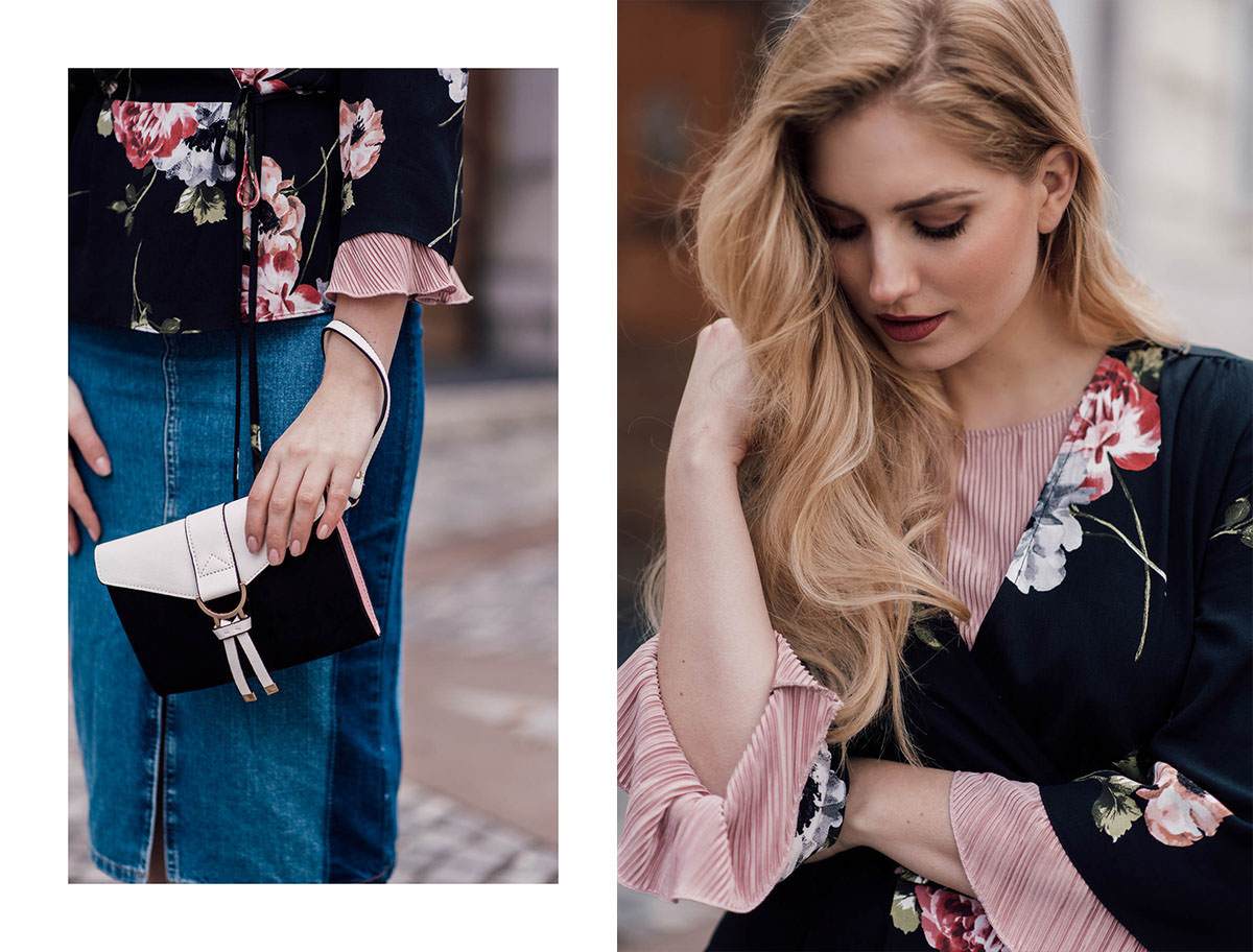 I admit, I am a bit of a jeans hoarder. In my mind the hunt for the perfect pair never ends. A good pair of jeans is something you can always count on, don’t you think? With jeans being one of my main pieces of wardrobe, equally important as a black blazer, a good bra and a perfect white shirt, in my past I was mainly focused on trousers. Last summer I added a jeans jacket and two jeans shirts, but never even considered a jeans skirt. Until… I found this midi length in Dorothy Perkins. With its unusual pattern and design, it caught my eye. I paired it with a flower print kimono and a trendy pink shirt. Modern geisha, was my friend’s description of this look.
