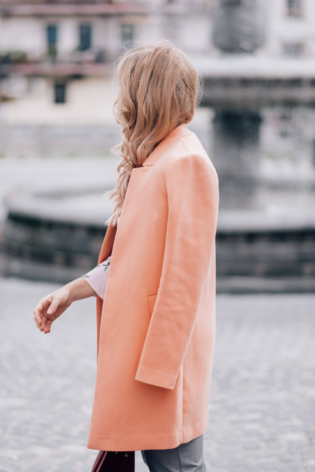 Some may think today’s #ootd is more suitable for spring days, at least colourwise. I disagree! Adding a pop of vibrant colour to your look is a great idea if you want to stand out from the crowd. Street style in autumn is usually full of black, grey and burgundy, and this year is no different. I included the latter two in this look, combining them with a floral print blouse and a vibrant orange coat, to make it even more interesting and fun!