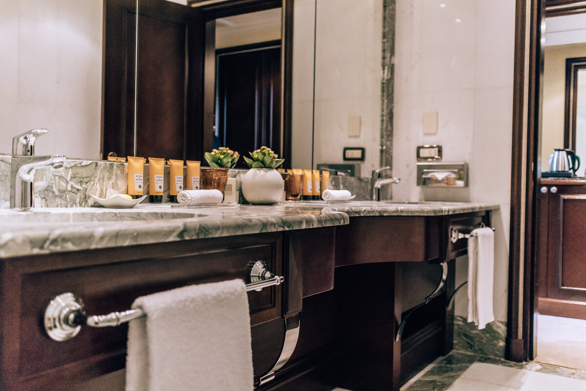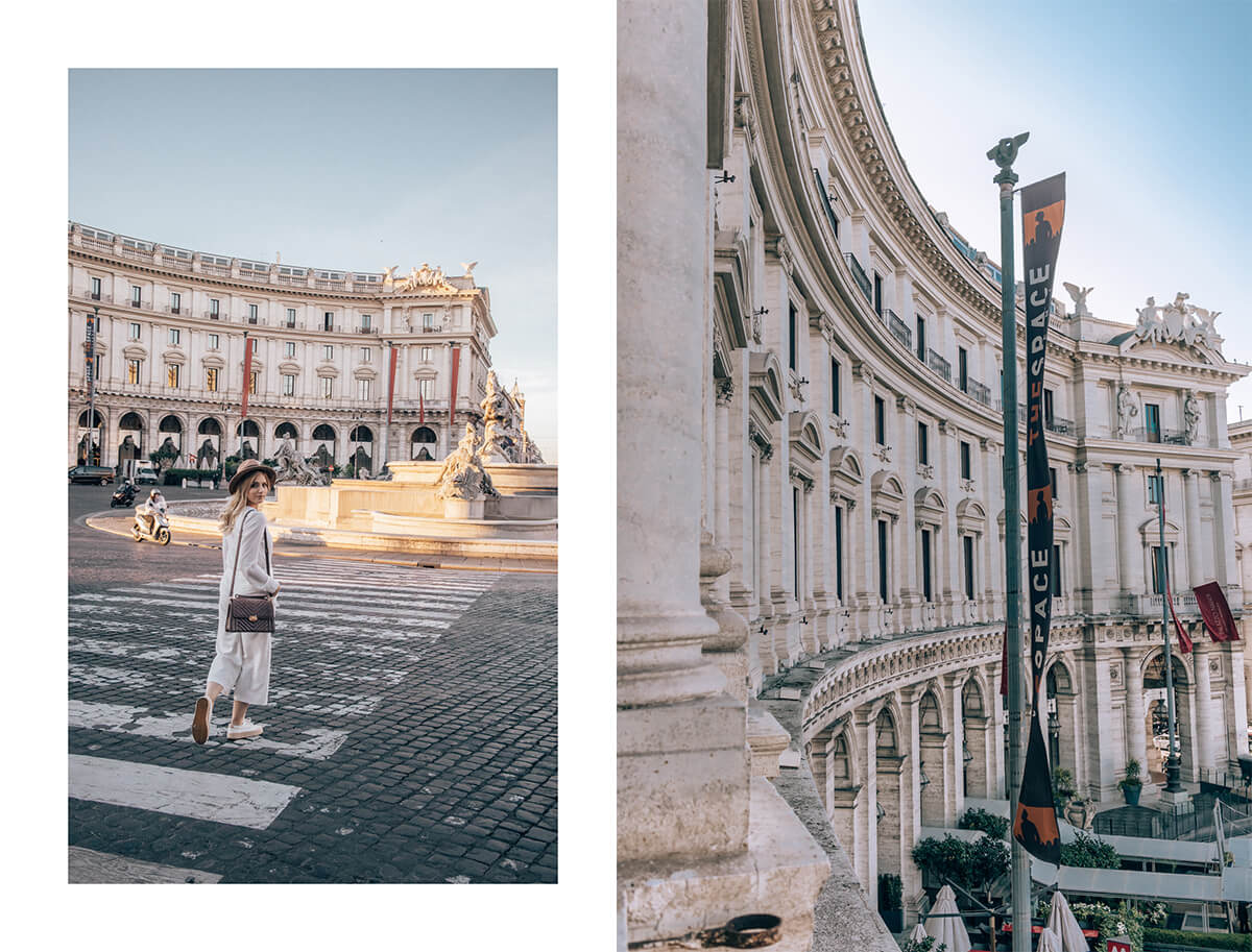 Palazzo Naiadi, The Dedica Anthology, Autograph Collection hotel is architecturally made of two halves, combining 238 rooms and suites. Rooms and suites are designed and decorated in neoclassical style and have a perfect mixture of modern and historic elements. The Hotel offers a presidential suite, called The Sophia Loren Suite (which is a true private apartment), three contemporary Executive suites, while we stayed in a specious high sealing Duplex Junior Suite, where we slept on the mezzanine, relaxed at the living room below and enjoyed the piazza view. Rich brocade curtains, silk wall-hangings, luxury furniture, details in bronze and gold, marble and mahogany bathroom, stunning view – luxury, history and design combined. The Palazzo Naiadi hotel offers a wide selection of breakfast options, as well as delicious Italian and international cuisine in their restaurant – including the panoramic terrace. They will pamper your senses in their wellness centre, you can relax at their sumptuous marble lobby with high ceilings and even go to a hotel fitness center. Or take a dip in their outdoor pool. Sounds like a dream? It is a reality at Palazzo Naiadi.