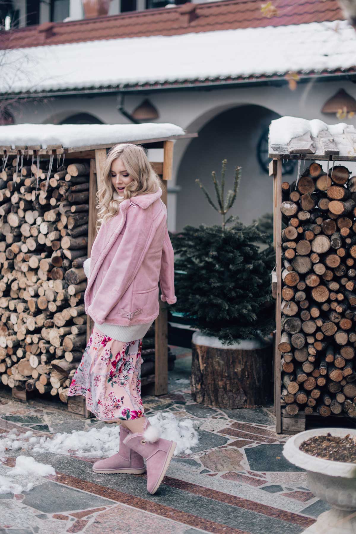 …so zame precej blizu zimski perfekciji. Čeprav občasno preklinjam poledico in plundro ter ihtavo drgnem dlani drugo ob drugo, imam zimo rada. Predvsem takrat, ko se vse ujame v tisti popoln zimski trenutek, ki ga pravzaprav ne znam opisati. Zagotovo ima veliko opraviti z dobro družbo, hrano in pijačo, pravim vzdušjem, ki ga pričara pravi ogenj in udobjem. Pojem udobja so zame že zadnjih nekaj let UGG škornji, ki so zagotovo najmehkejša in najtoplejša obutvena izbira. In če sem pretekla leta prisegala na klasiko, sem se letos odločila za nekoliko bolj drzen model – UGG Irina Dusk s kovinsko zaponko s Swarowski kristalčki. Lani sva jih s Teso (Magnifique blog) obuli za potep po maroški puščavi, letos pa jih je najina fotografinja Katarina Veselič ujela na najinih nogah v njihovem naravnem, zimskem habitatu. Ob odprtem ognju, med lesom in snegom…
